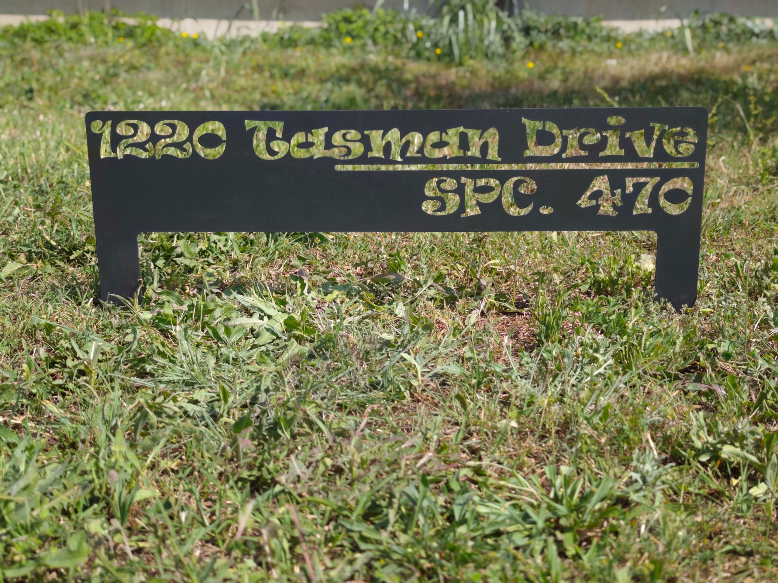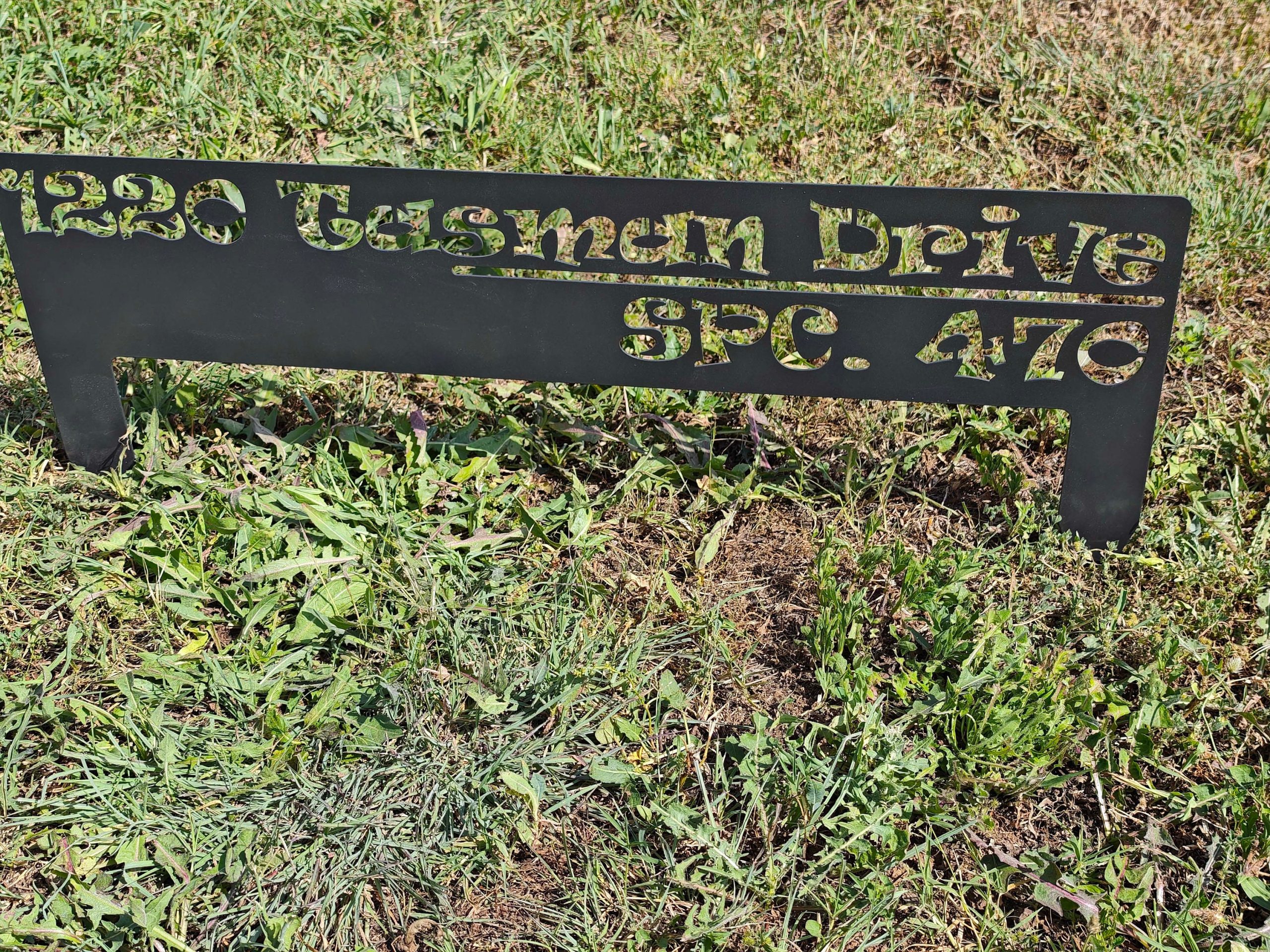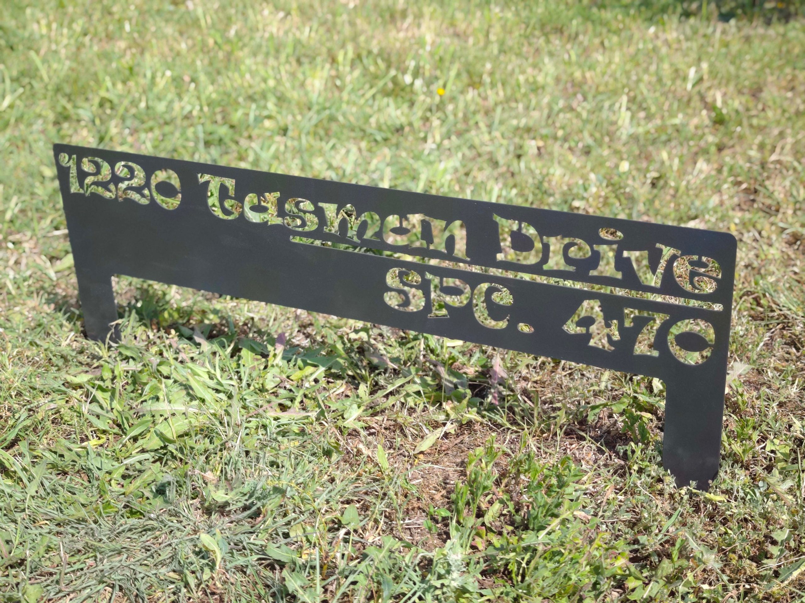 Laser cutted metal address sign.